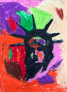 3. Use drawing techniques (blending, shading, rubbing) to fill in the negative space of the Peter Max Inspired Statue of Liberty